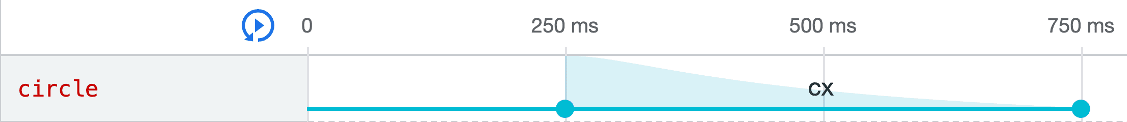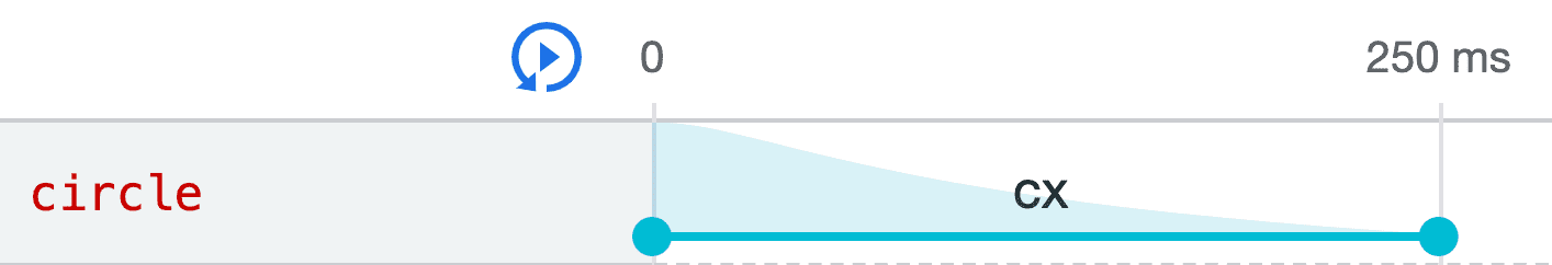 在 Chrome 開發人員工具的「動畫」面板中,您可以找到動畫轉場效果的時間軸。您可以檢查動畫總時間長度、元素和緩和時間。